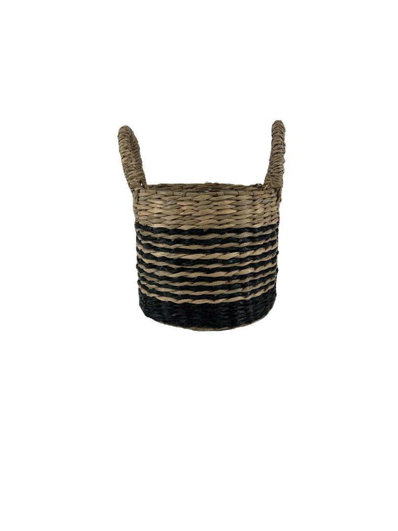 Zeegras mand Ø13xH12cm zwarte strepen